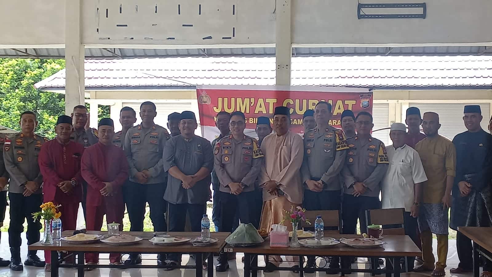 Kapolres Riky tampak didampingi Wakapolres Bintan Kompol Eri Sujati, Kapolsek Gunung Kijang Iptu Zul Ilham dan PJU Polres Bintan mengikuti Jumat Curhat.