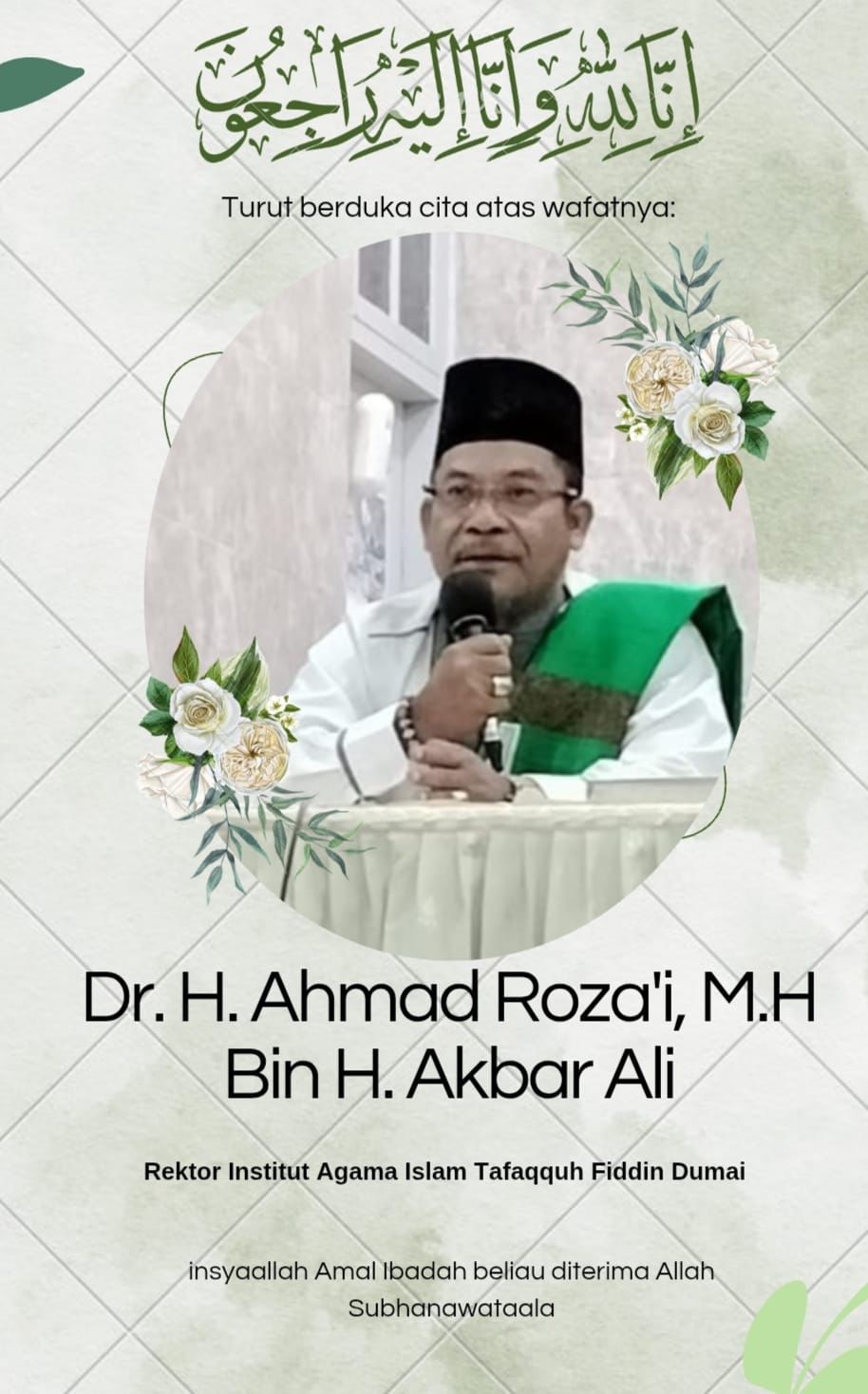RADARBINTAN.COM, Bengkalis – Bupati Bengkalis, Kasmarni menyampaikan belasungkawa mendalam atas wafatnya Rektor Institut Agama Islam Tafaqquh Fiddin Dumai, Dr. H. Ahmad Rozaii Akbar pada Jumat, 04 Juli 2025.