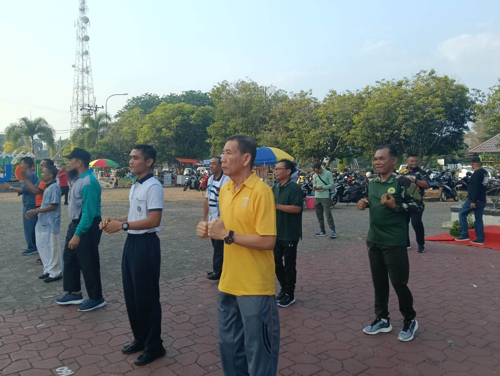 RADARBINTAN.COM, Bengkalis — Dandim 0303/Bengkalis diwakili Danramil 01/Bengkalis, Kapten Arh. Yogi Sudarso menghadiri senam bersama di Lapangan Tugu, Jalan. Jend. Ahmad Yani, Bengkalis, Kamis, 23 Juli 2025.