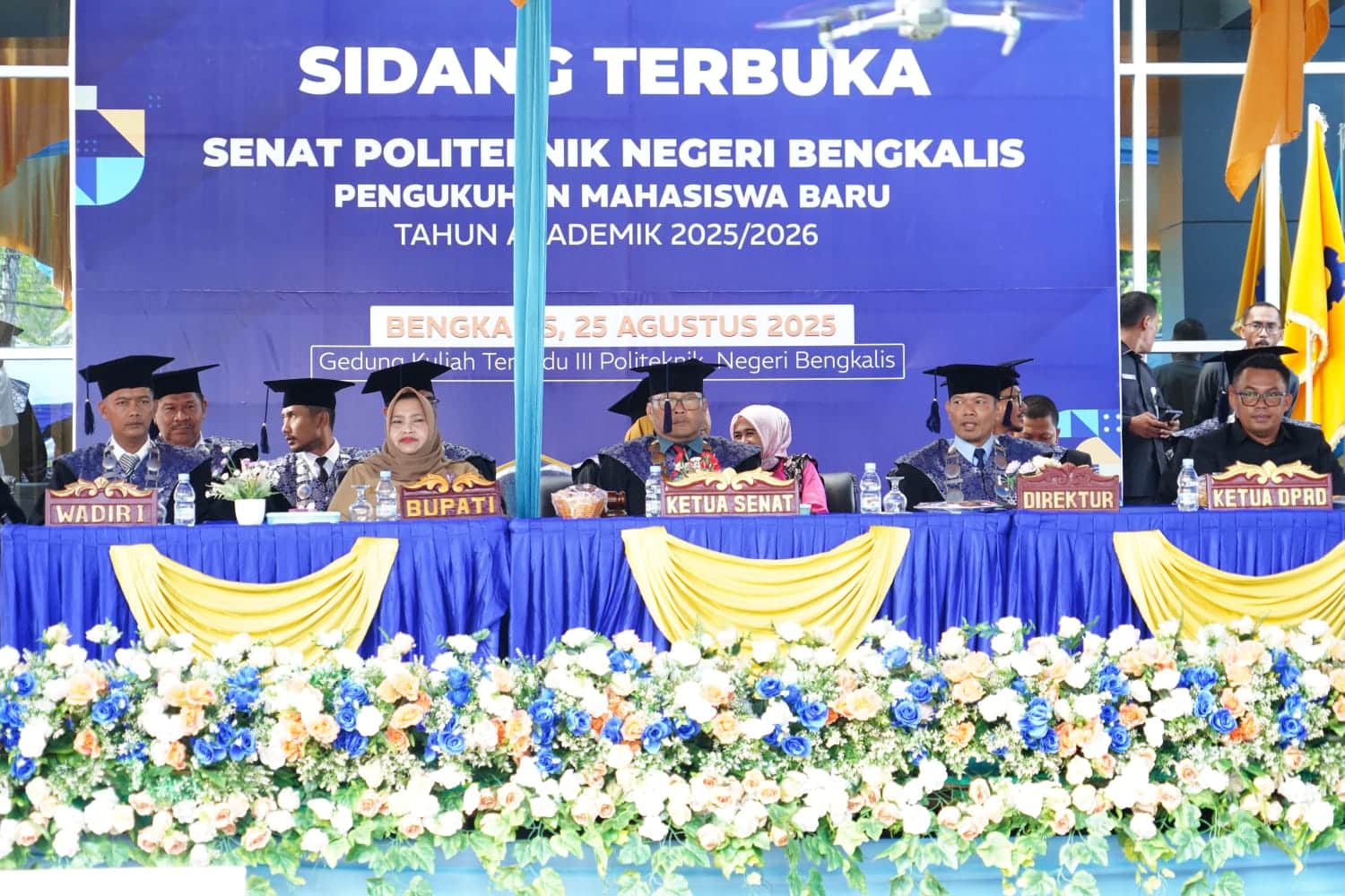 RADARBINTAN.COM, Bengkalis – Politeknik Negeri Bengkalis (Polbeng) menggelar Sidang Senat Terbuka dalam rangka Pengukuhan Mahasiswa Baru Tahun Akademik (TA) 2025/2026 di Halaman Gedung Kuliah Terpadu 3, Jalan Bathin Alam, Bengkalis pada pada Senin, 25 Agustus 2025.