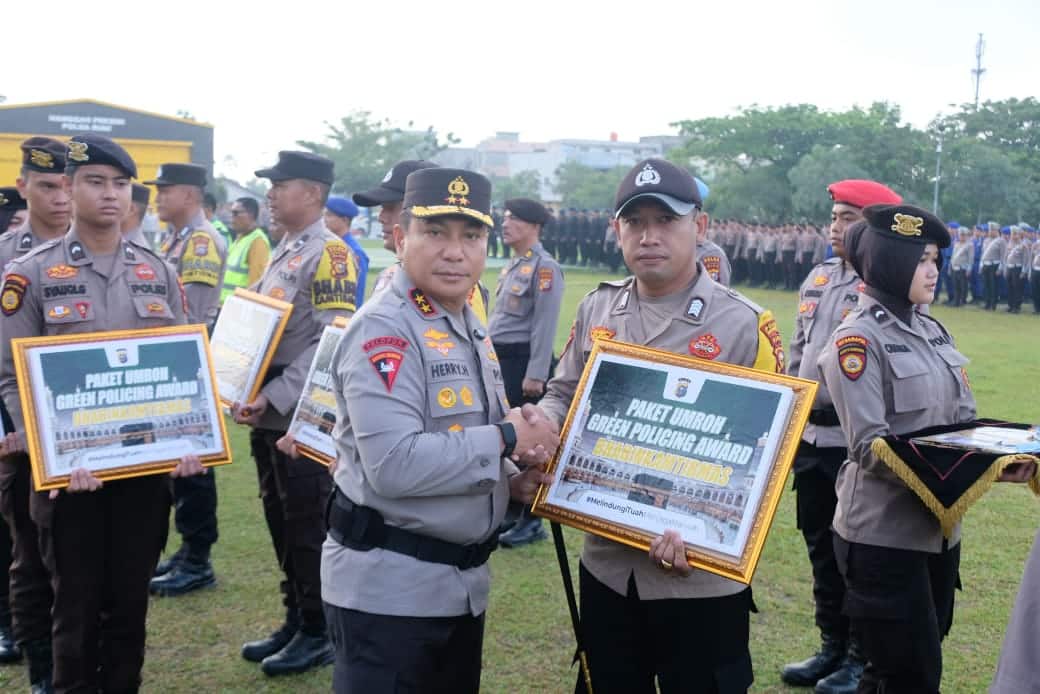 Penyerahan penghargaan bagi pemenang Green Polisi terbaik di jajaran Polda Riau diberikan kepada 12 Bhabinkamtibmas. Bagi yang beragama Islam, Insya Allah pada 07 Januari 2025 akan diberangkatkan umroh bersama Tuan Guru Ustadz Abdul Somad.