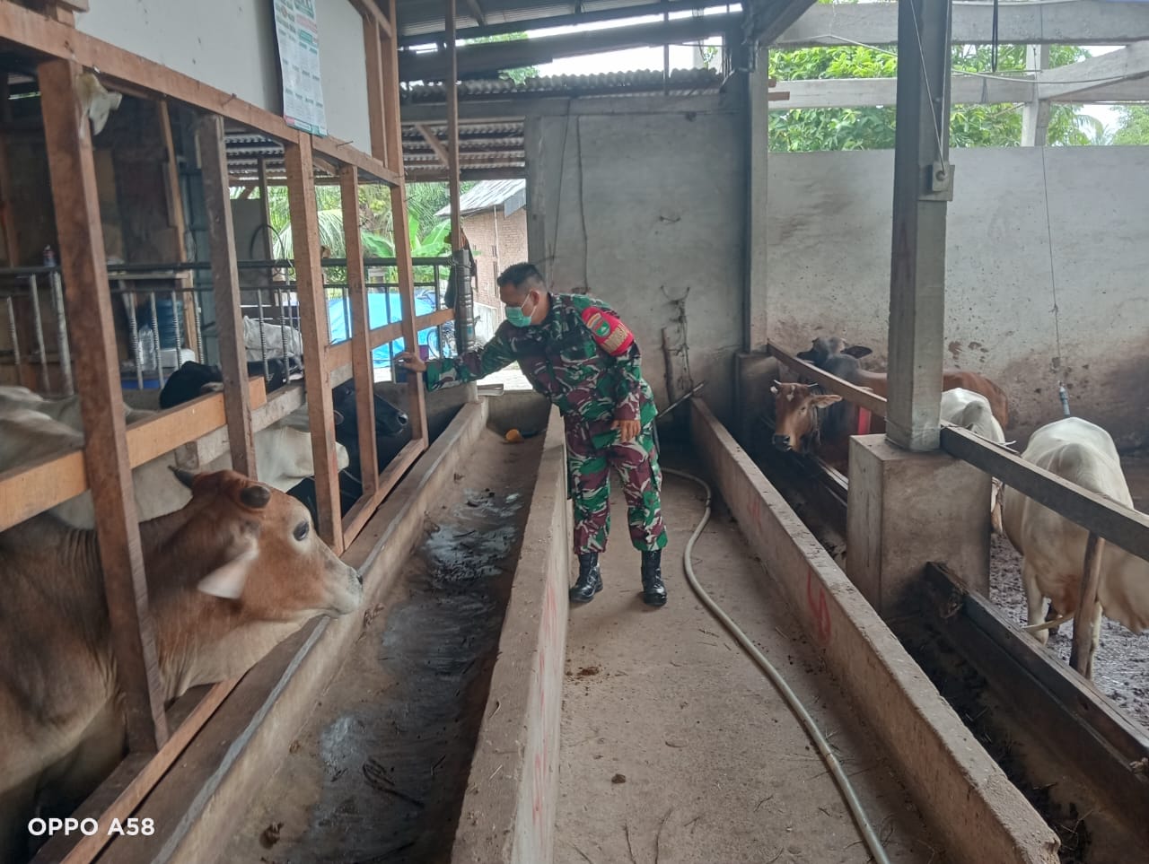 Babinsa Balai Makam itu melakukan pemantauan sebagai upaya untuk mengantisipasi penularan penyakit mulut dan kuku (PMK).
