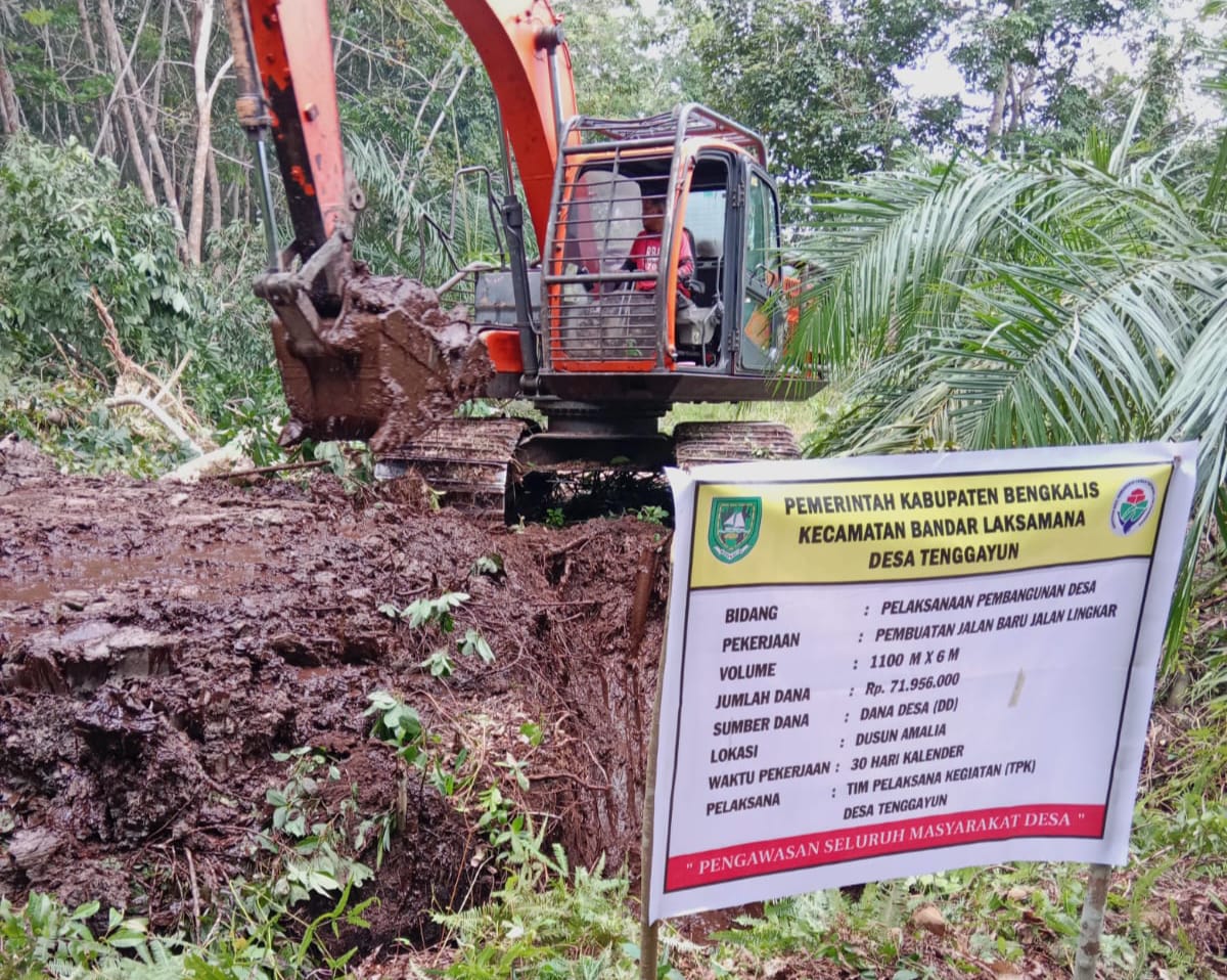 RADARBINTAN.COM, Kabupaten Bengkalis — Pemerintah Desa Tenggayun melaksanakan Pembangunan Jalan Baru Jalan Lingkar di Dusun Amalia sepanjang 1.100 meter dengan lebar 6 meter.