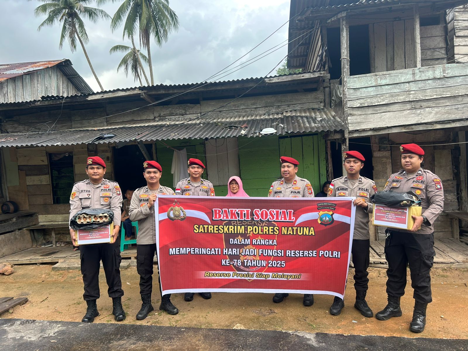 “Momentum HUT Fungsi Reserse Polri ke-78 ini kami maknai dengan kegiatan positif yang memberikan manfaat bagi masyarakat. Kami ingin menunjukkan bahwa tugas Polri tidak hanya melakukan penegakan hukum, tetapi juga hadir membantu serta memberikan solusi bagi masyarakat,” kata Kapolres Natuna melalui Kasat Reskrim, Iptu Richie Putra, Jumat