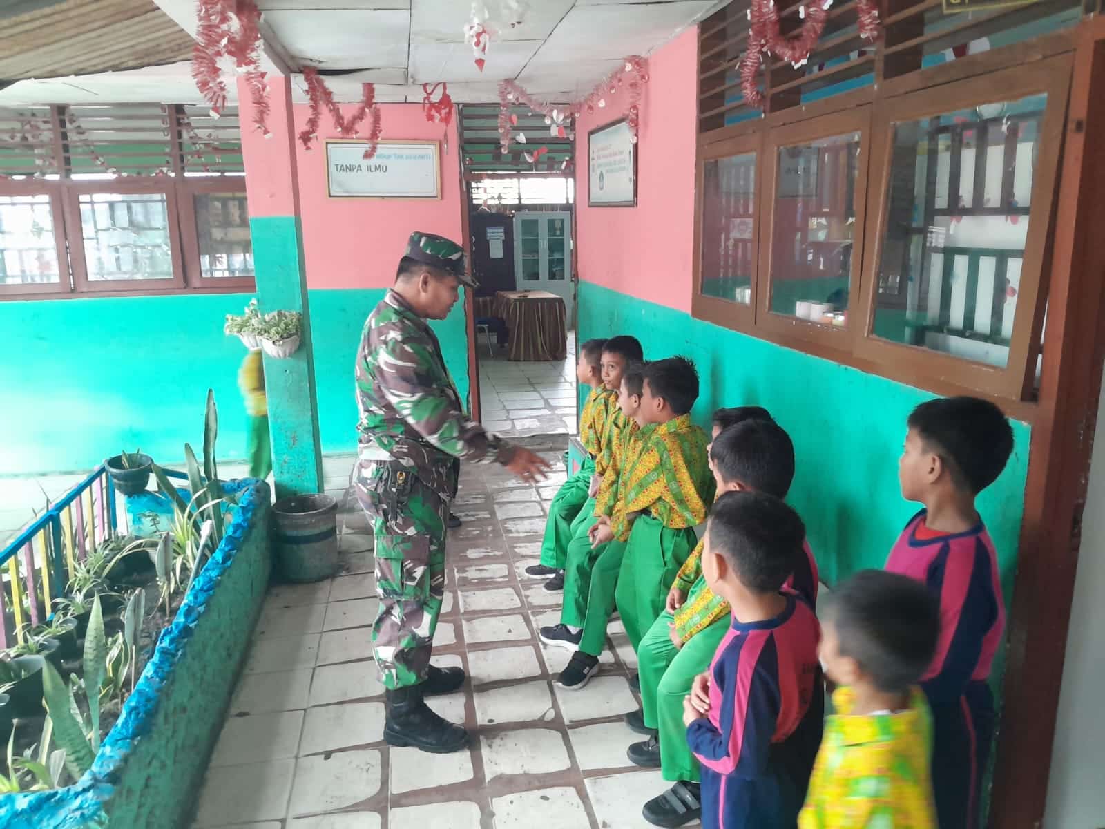 RADARBINTAN.COM, Kabupaten Bengkalis — Dalam rangka membina mental generasi muda, Anggota Koramil 03/Mandau, Kodim 0303/Bengkalis, Serma Fauzi melakukan sosialisasi tentang Pancasila kepada para siswa SDN 10 di Kelurahan Air Jamban, Kecamatan Mandau, Kabupaten Bengkalis, Rabu, 17 Desember 2025.