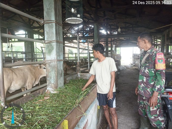 Pemantauan kali ini dilakukan oleh Sertu Robbi terhadap 12 ekor sapi milik Aditia yang berada di Kelurahan Babussalam, Kecamatan Mandau, Kabupaten Bengkalis, Rabu, 24 Desember 2025.